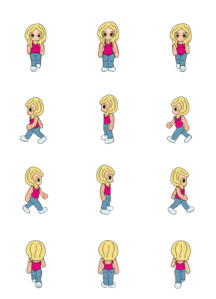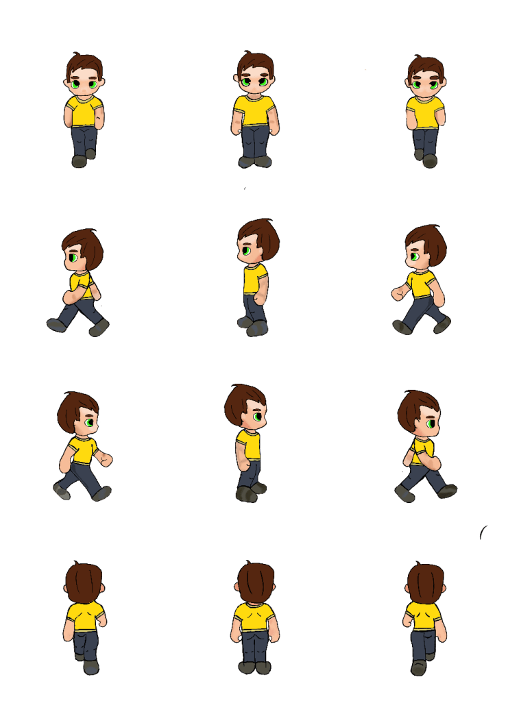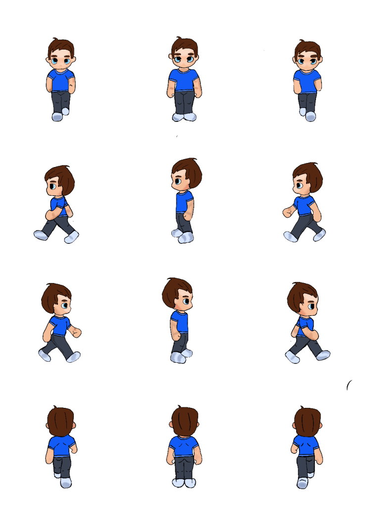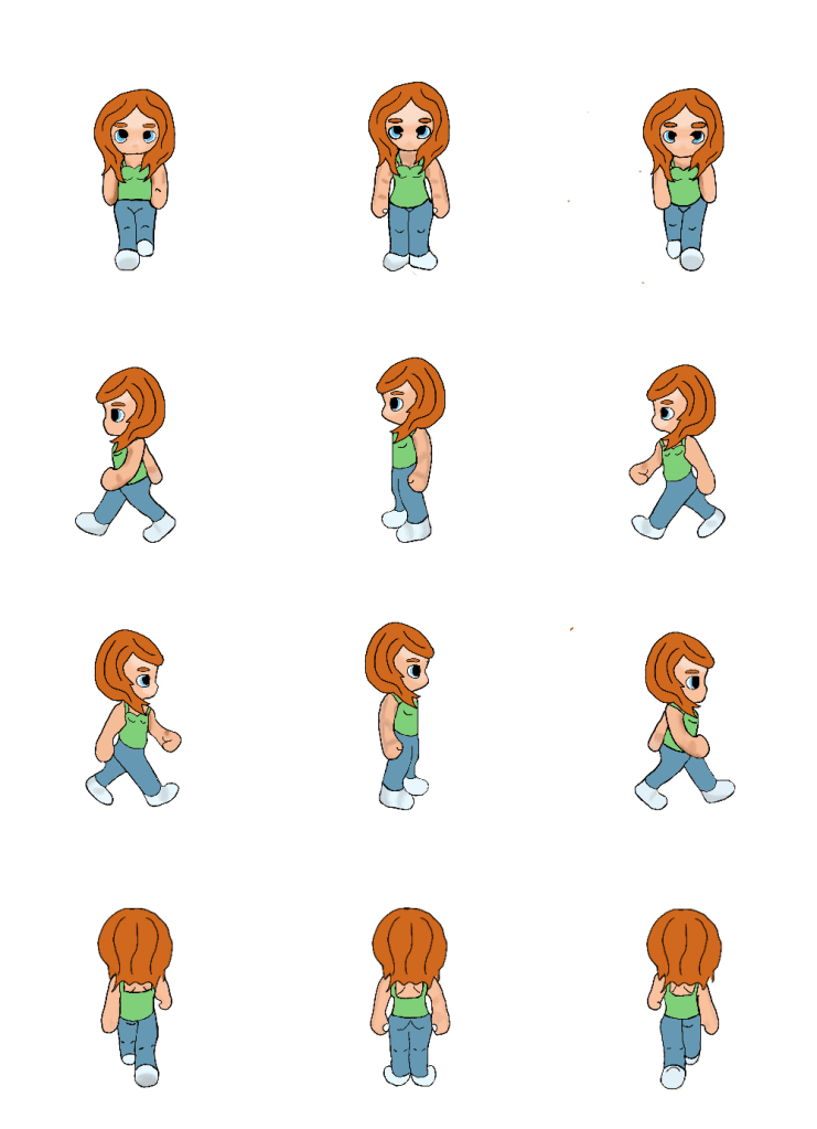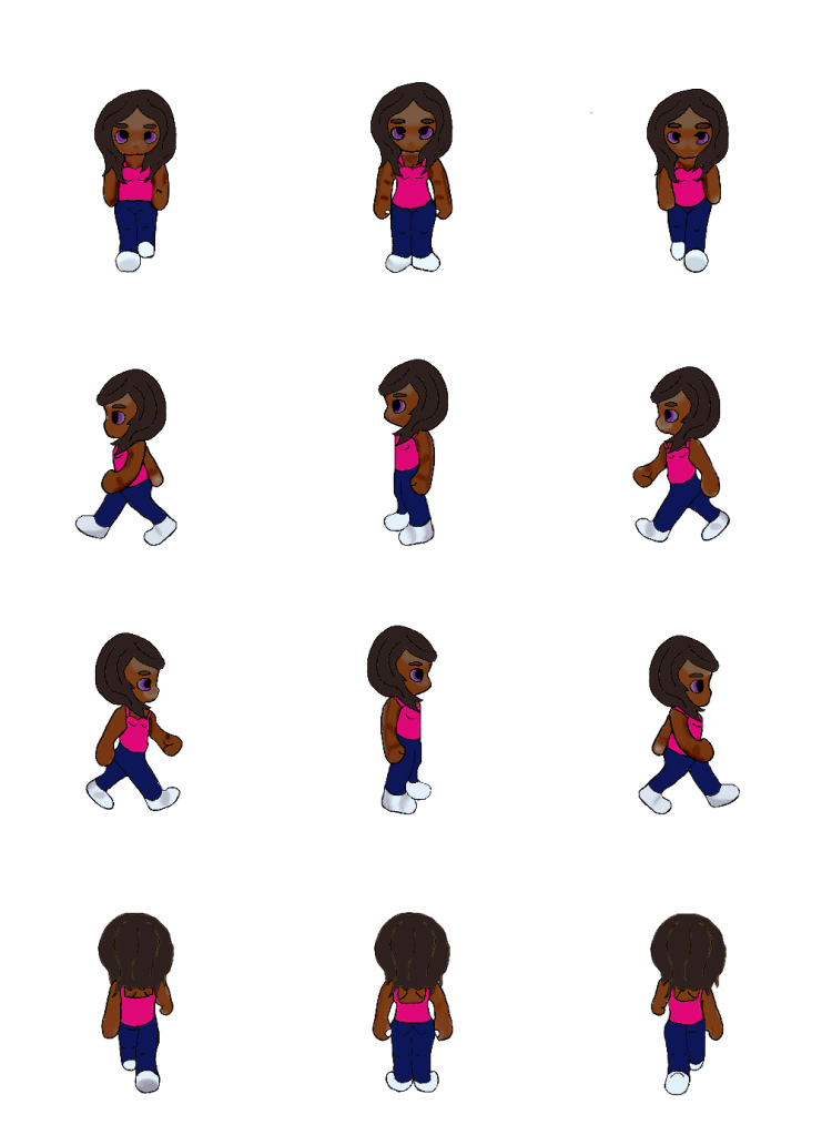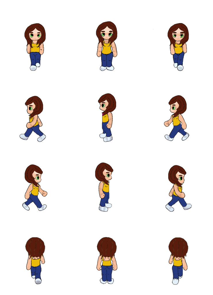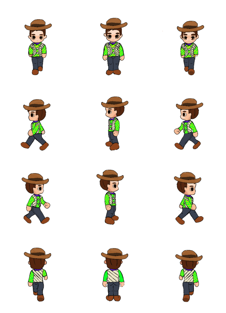 I also created pixel art sprite sheets for characters using template references and adapting them to fit the project’s style.